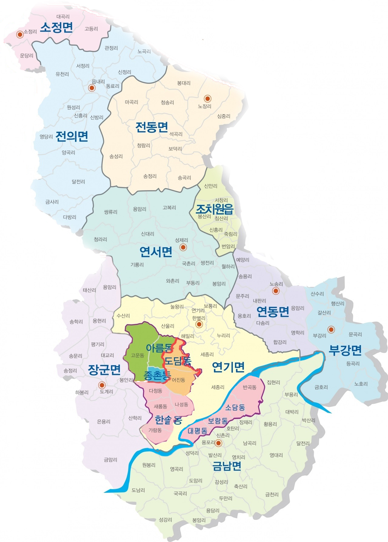 - 조치원읍 → 북부 외곽