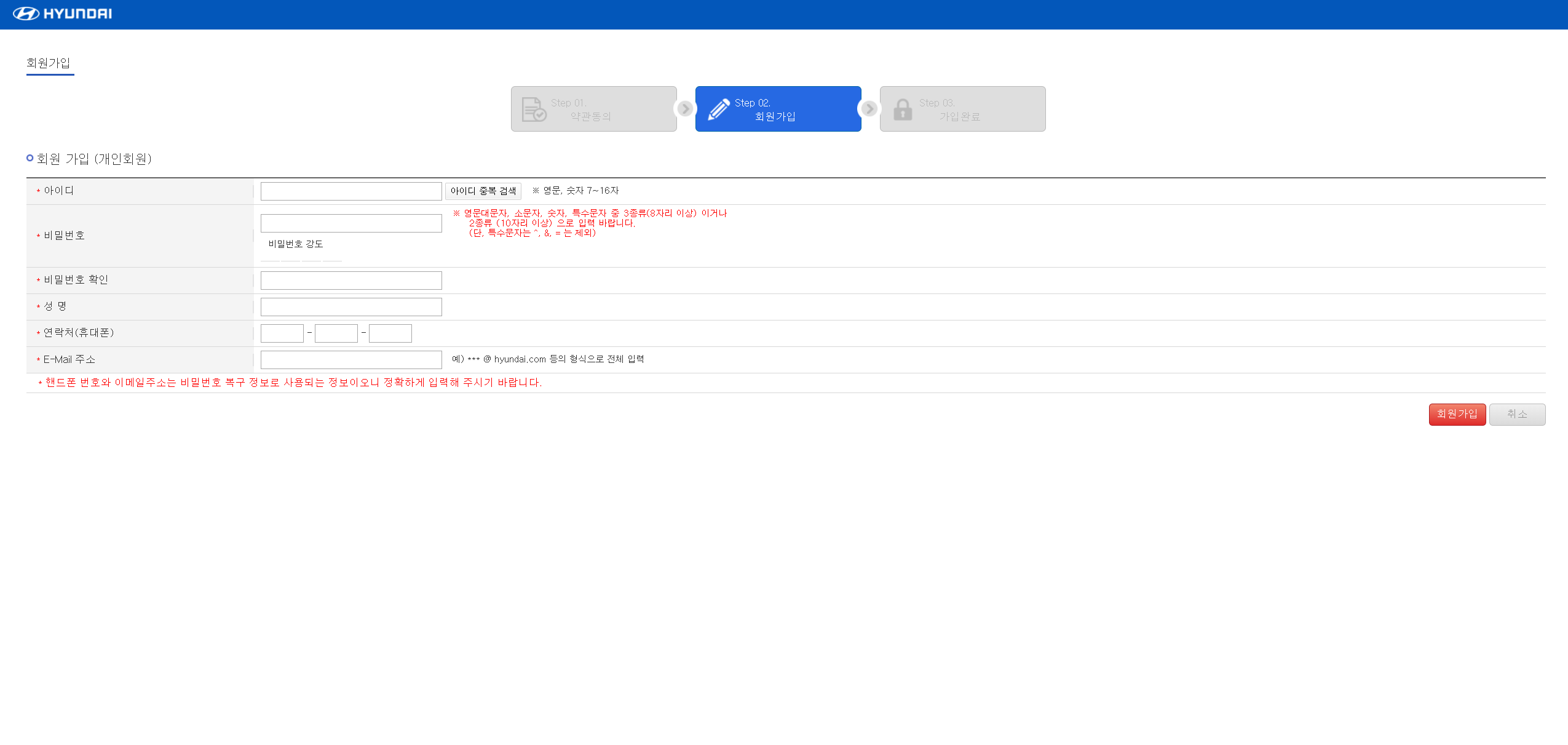 생년월일이나 민감한 정보 넣는 화면 항목은 없으니 그냥 ID, 비밀번호, 휴대폰 번호, 이메일 을 입력하시고 가입하시면 됩니다.
